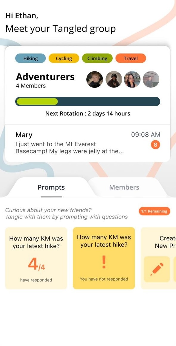 Tangled forms a group of 4-5 people who match with you based on your interests. No algorithms, just genuine connections.